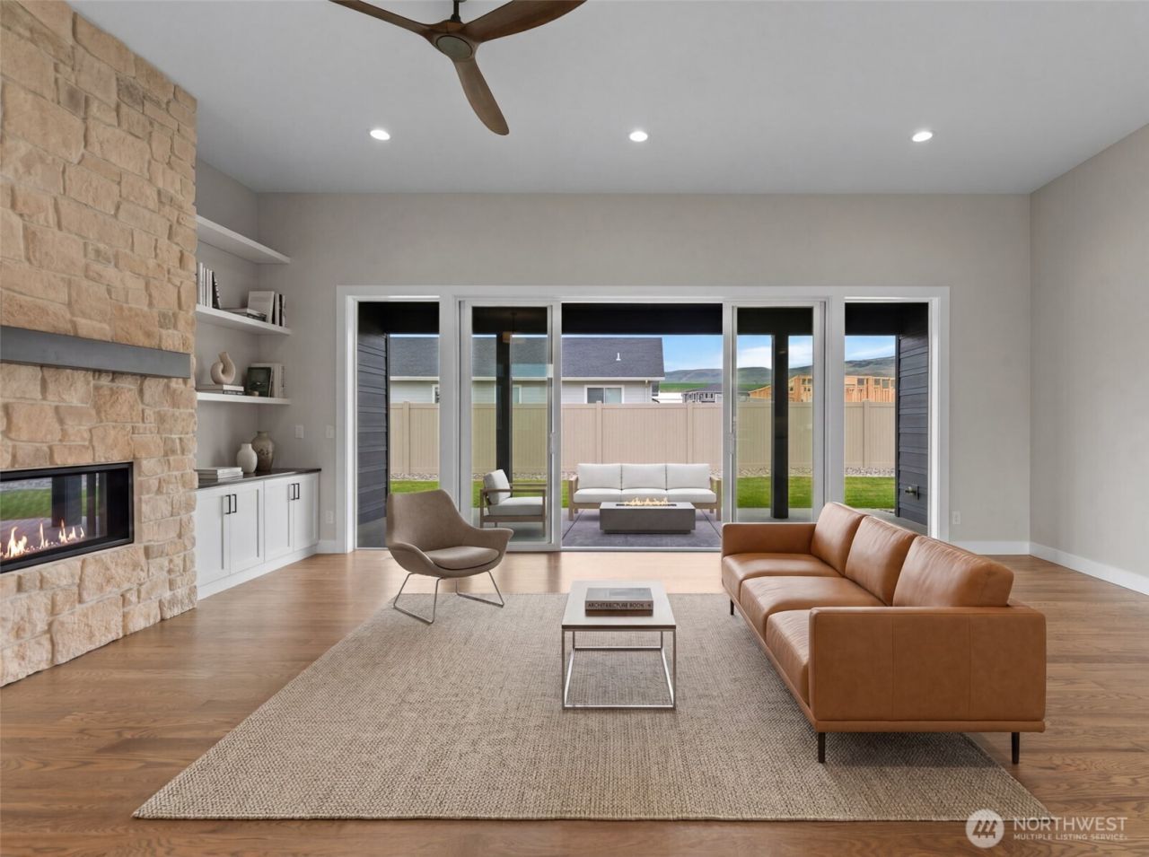 Experience elevated new construction living in the heart of East Wenatchee! Built by a quality craftsman, this 1,592sf home blends modern design with thoughtful functionality. Soaring 12 ft ceilings and expansive windows create a light-filled, airy feel, while real hardwood floors add warmth and sophistication. The stunning kitchen is the centerpiece of the home, featuring center island, stainless steel appliances, a walk-in pantry with its own prep sink, and sleek contemporary finishes. The restful primary suite offers a private retreat with walk-in closet and attached 3/4 bath complete with dual vanities and tiled walk-in shower. Additional features include upgraded carpet padding, ceilings fans, focal floor to ceiling stone surround fireplace in the great room & more! Situated on a spacious 10,454sf level lot, in a cup-de-sac, the outdoor space is just as impressive - fully fenced with brand new landscaping, in-ground sprinkler system, curbed edging around the grass areas and rock accents. Enjoy the rear covered back patio featuring sand finished concrete and propane hook-up - ideal for BBQ'ing year round! This space is perfect for effortless entertaining. This single level home is move-in ready and designed to impress. Low annual HOA dues of $165/year.