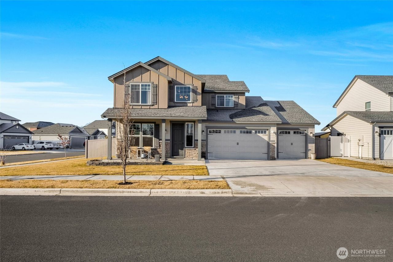 Built in 2020 and impeccably maintained, this stylish modern home sits on a desirable corner lot in a fabulous neighborhood just steps from a 5-star golf course with clubhouse and restaurant. Offering 2,372 sq ft, this 4 bedroom, 2.5 bath home features a versatile den/flex space perfect for a home office or bonus room. The bright kitchen showcases quartz countertops, on-trend white cabinetry, stainless appliances, under-cabinet lighting and is open to the living space with LVP flooring and a cozy electric fireplace. The spacious primary suite includes a luxurious 5-piece en suite bath and generous closet space. Enjoy outdoor living on the covered back patio overlooking the fully fenced yard with UGS. Custom blinds throughout, washer & dryer included. An expansive 5-car garage with epoxy floor provide both style and function for the mechanic, car restoration, artist, toys, boat, workshop or home gym. Close to Blue Heron Park for recreation and water sports with easy I-90 access?this home truly offers the perfect blend of comfort, convenience and lifestyle.