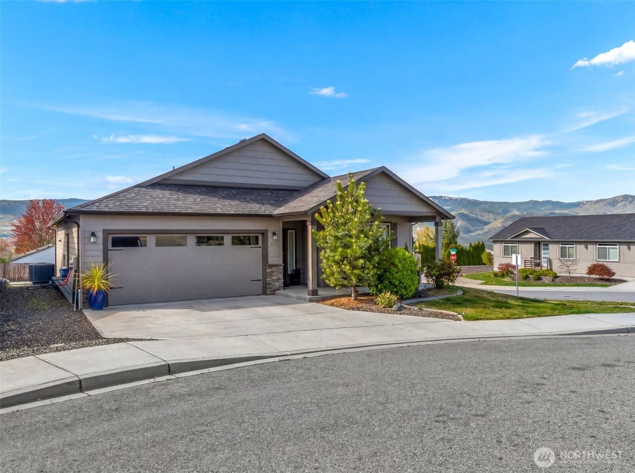 This single level no-step rambler is a highly sought-after property in a quiet neighborhood setting, offering the perfect combination of comfort, space, and functionality with expansive views to Mission Ridge. The kitchen is an entertainers dream featuing custom cabinets, granite countertops, stainless appliances, and ample counter space, complemented by an oversized pantry. The great room design concept creates a seamless flow between the open living room and adjoining dining area, highlighted by vaulted ceilings and an abundance of natural light. The primary suite is a spacious retreat, boasting a dual vanity bathroom, separate shower, soaking tub, and an oversized closet with custom shelving. Two sizable bedrooms share a second bathroom, thoughtfully designed to provide functional livability. This residence boasts a centralized location and low maintenance, ideal for those seeking an effortless relaxed lifestyle.